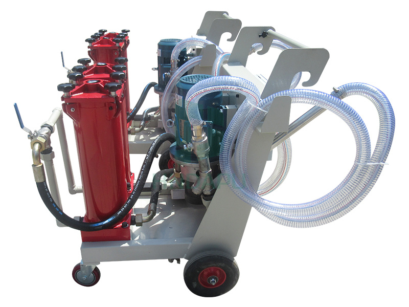 真空濾油機真空濾油機可(ke)去除液壓油、潤滑油、汽輪(lun)機油等石(shi)油基油品中的游離水(shui)和固體污(wu)染物,也可(ke)根(gen)據需要單獨(du)對(dui)油液進行旁(pang)路或在線凈化處理。